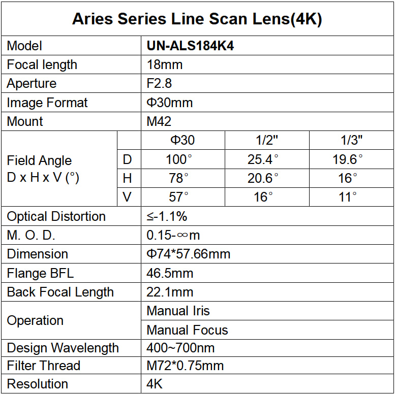 एरीज़  सीरीज लाइन स्कैन  लेंस( 8 के )