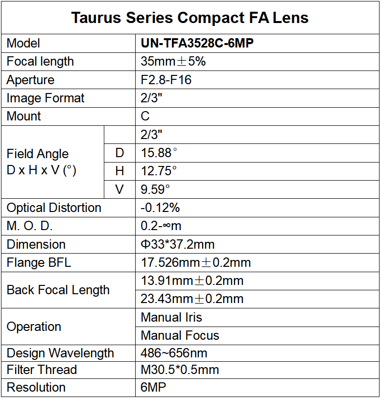 Taurus Series 6MP 2/3" FA Lens